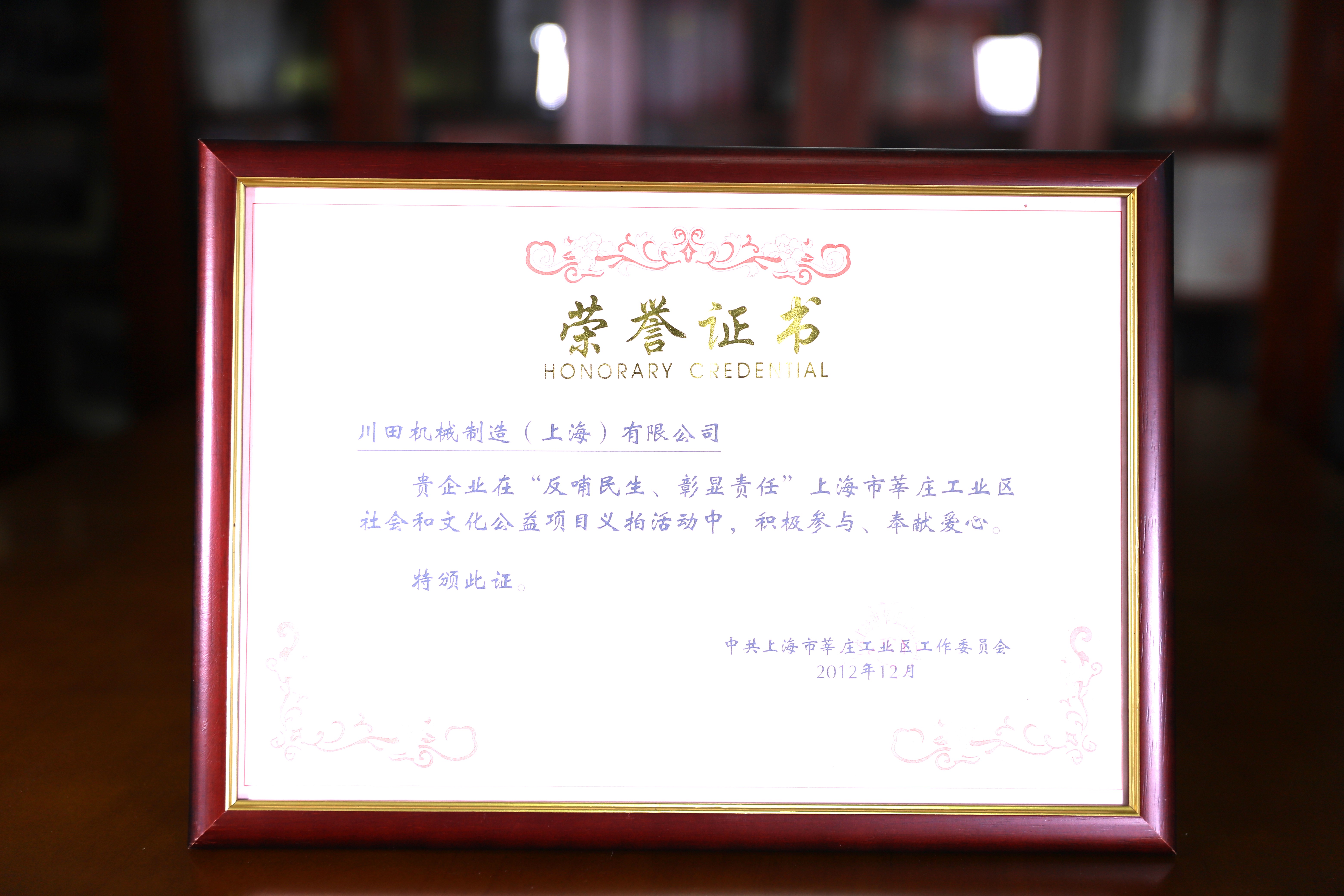 2012 莘莊工業(yè)區(qū)社會和文化公益項目榮譽(yù)證書