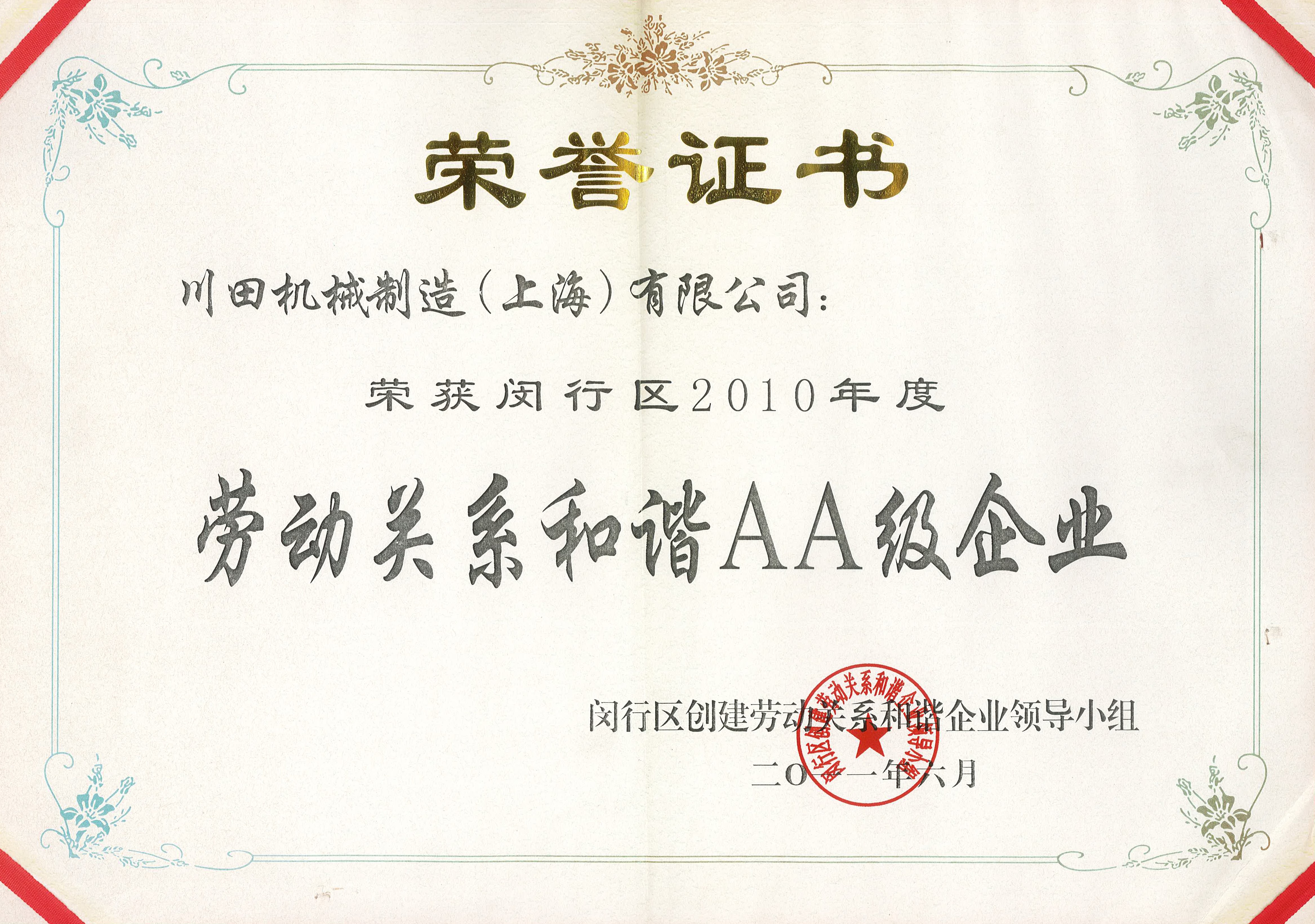 2010年度閔行區(qū)労務(wù)関係安定企業(yè)