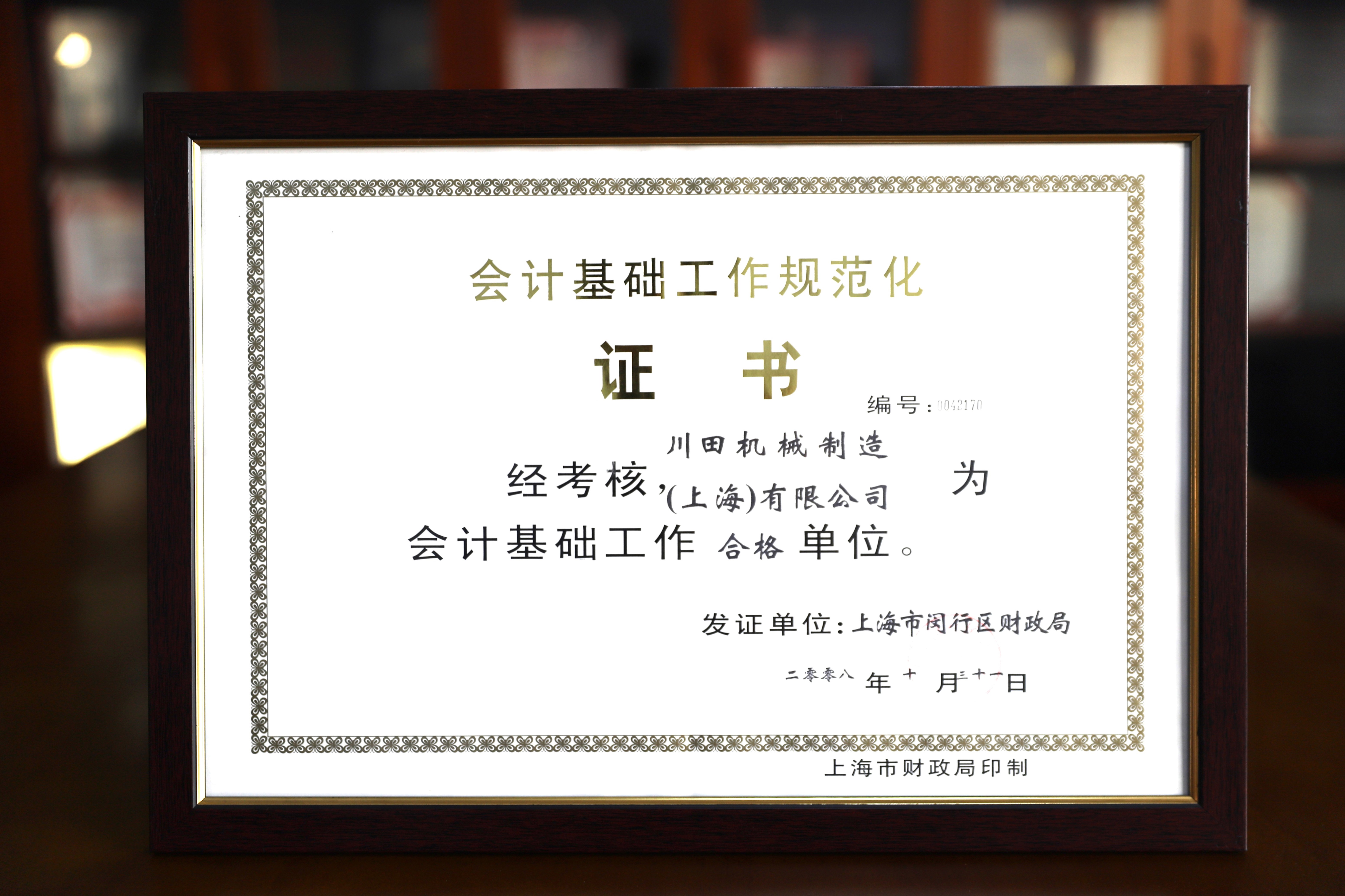2008年度上海市赤十字栄譽(yù)証書-川田機(jī)械